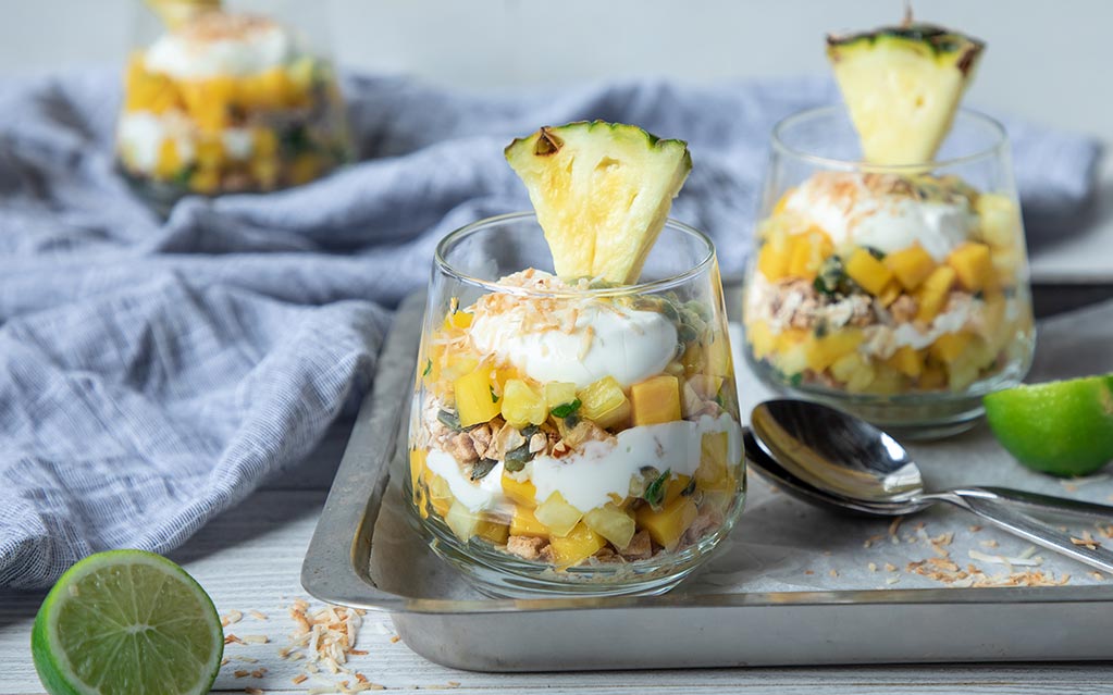 A light and healthy breakfast wonders! These breakfast cereal cups are filled with creamy yoghurt and fresh tropical fruits. They will become your regular breakfast choice.